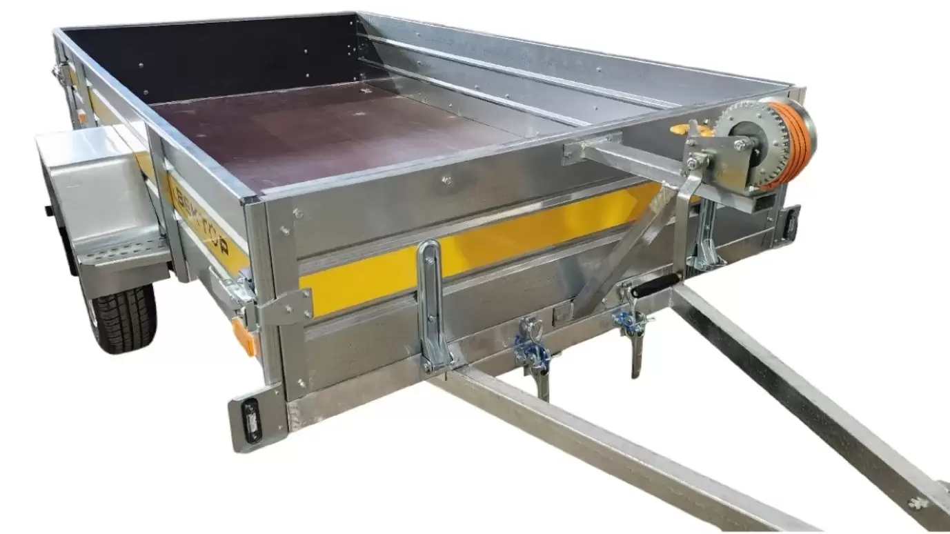ЛАВ 81026AБортовой одноосный прицеп с тормозом3500 x 1500 1080Прицеп повышенной грузоподъёмности для перевозки квадроцикла, снегохода, и др. грузов. Кузов откидной.