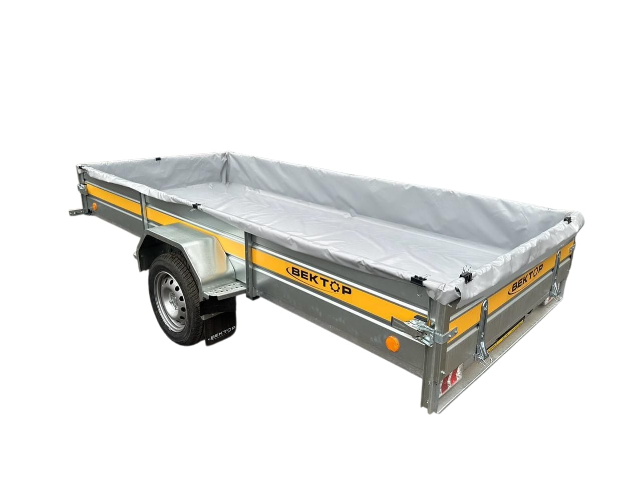 Опции: пластиковая крышка, каркас с тентом, каркас с тентом 250 мм (возможна установка только на борт 380 мм), запасное колесо. Не требуется категория "Е".