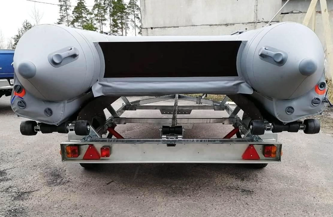 Предназначен для перевозки лодок типа КАТАМАРАН длиной до 5,4 метров по всем видам дорог, на которых допускается эксплуатация легковых автомобилей. Рама, ось прицепа полностью оцинкованные методом горячего цинкования изнутри и снаружи. Крылья выполнены из оцинкованной стали. Прицеп одноосный, без тормозов. Подвеска колес (R13) на двух полуэллиптических переменного сечения рессорах с гидравлическими амортизаторами. Направляющие полозы для размещения лодок типа КАТАМАРАН. Для обеспечения оптимальной нагрузки на сцепной шар, подвеска может быть смещена вперед или назад в зависимости от положения центра тяжести перевозимого груза. Оборудован съёмным задним "фартуком" для предотвращения контакта оптики с водой, при спуске на воду и подъёме лодки из воды. Сцепное устройство шарового типа, под шар D 50 мм. Полная масса 745 кг. Грузоподъёмность 465 кг. Фактическая до 700 кг. Габаритные размеры, мм - длина 4708; - ширина 2100; - высота 1255.