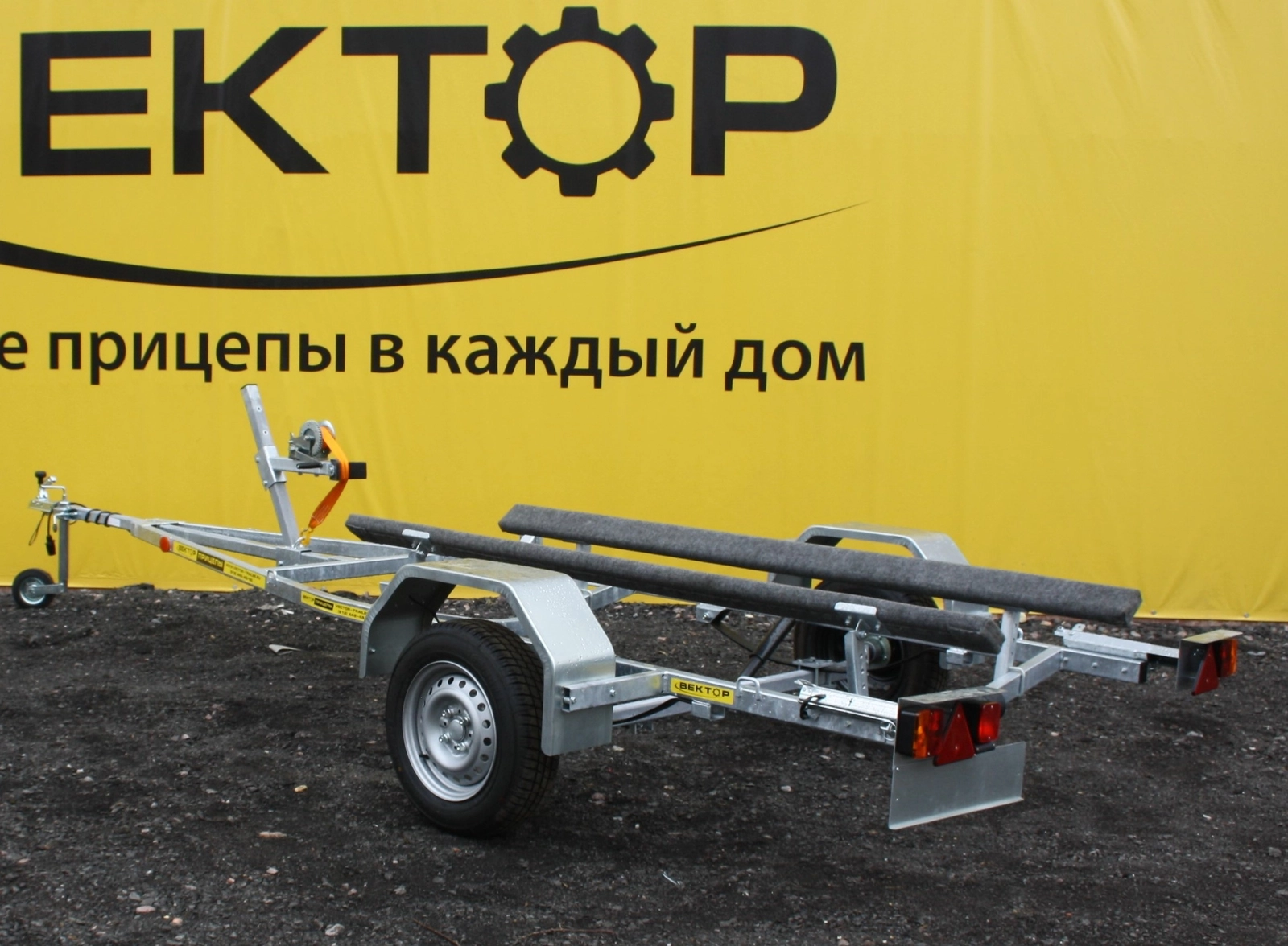 Легковой прицеп для перевозки гидроцикла, лодки, лодки ПВХ (надувной лодки) и для перевозки катера. Прицеп одноосный, максимальная длина плавсредства 4,8 м, грузоподъемность - 549 кг.