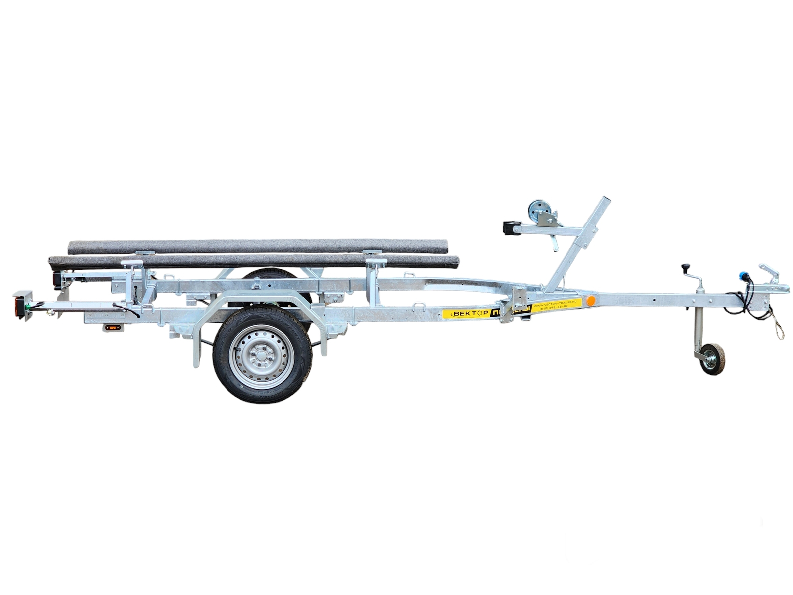 Легковой прицеп для перевозки гидроцикла или лодки. Прицеп одноосный, максимальная длина гидроцикла или лодки 3,8 м. Грузоподъемность 430 кг. Фактическая грузоподъемность 700 кг.