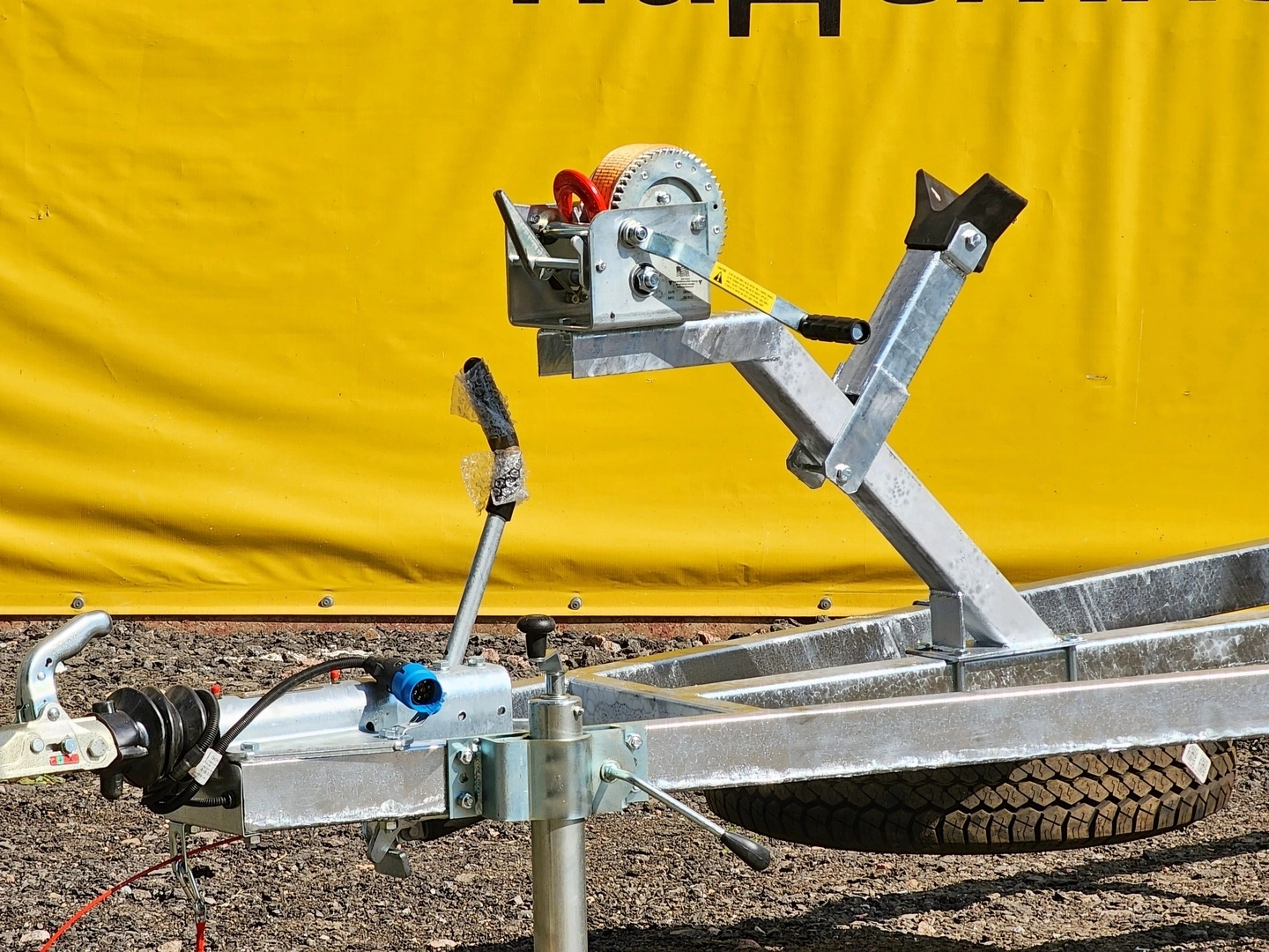Опорное колесо, ручная лебёдка, носовой упор, кронштейн для "запаски", запасное колесо - в стандартной комплектации.