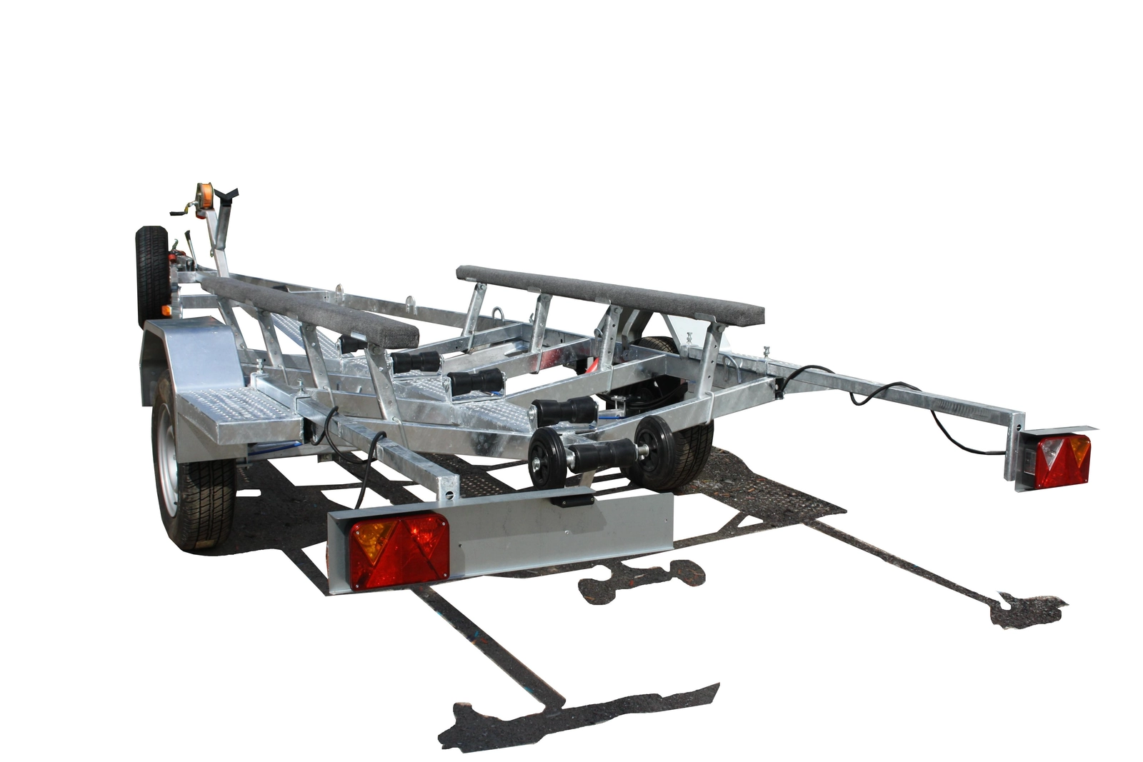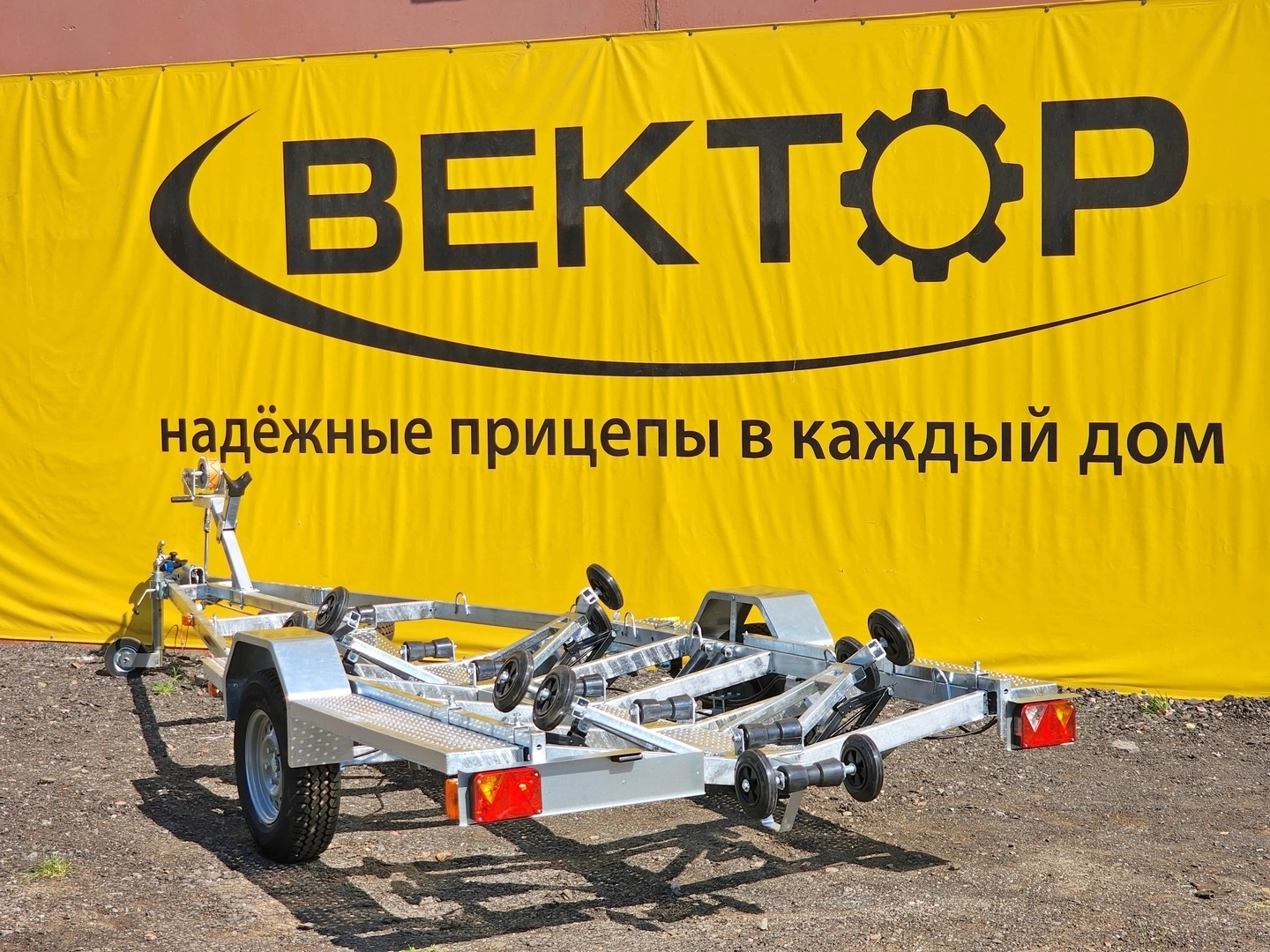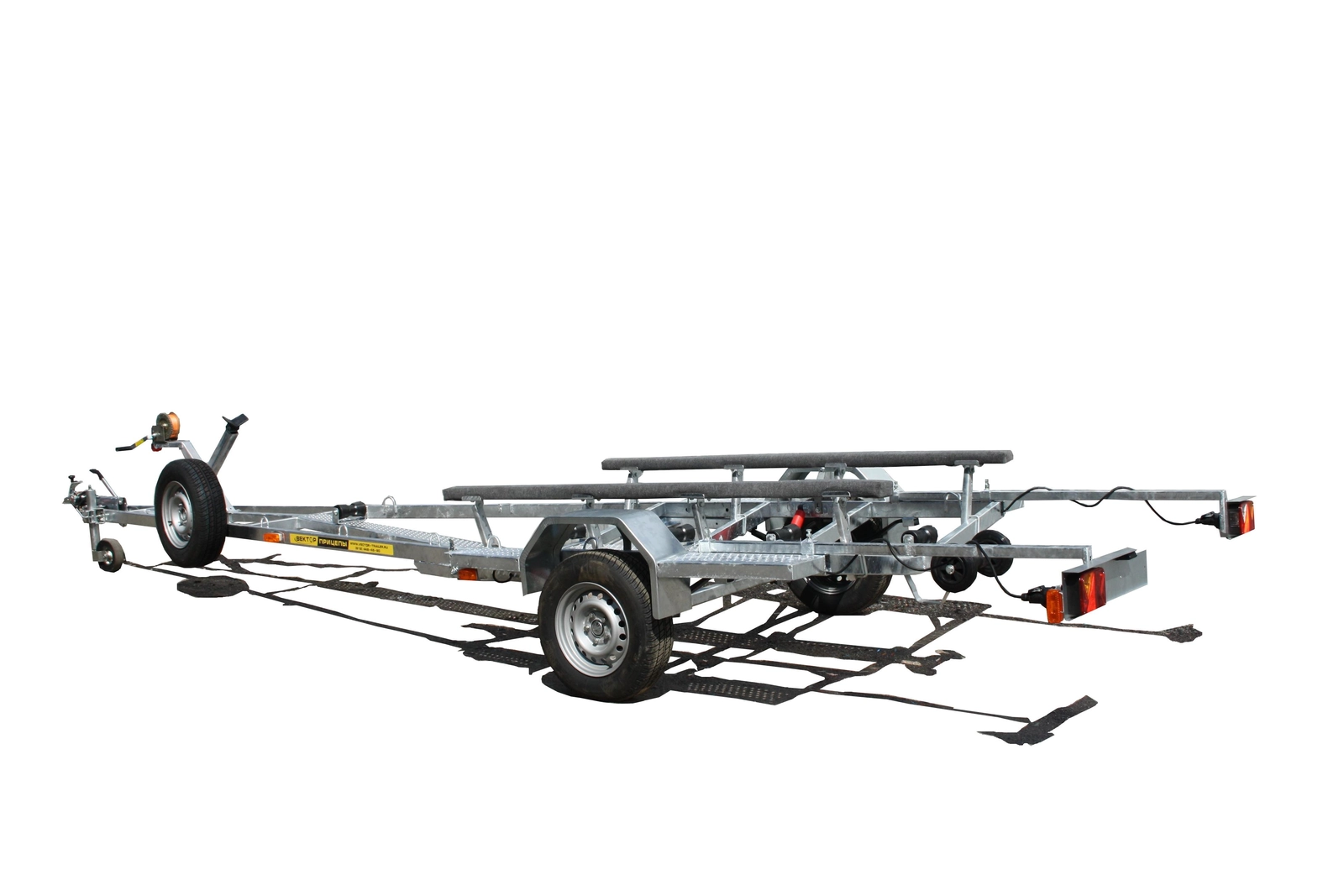 Легковой прицеп для перевозки лодки и для перевозки катера. Прицеп одноосный, максимальная длинна плав средства 6,3 м., грузоподъемность - 915 кг.