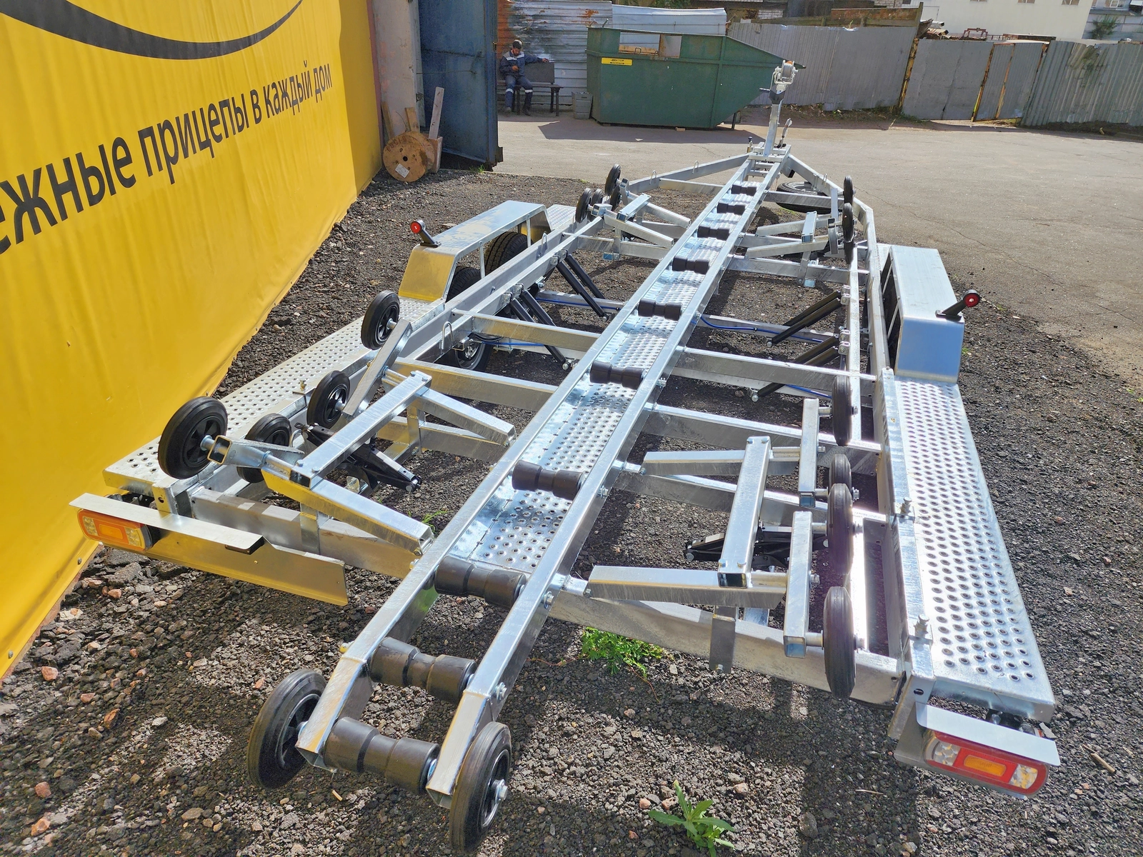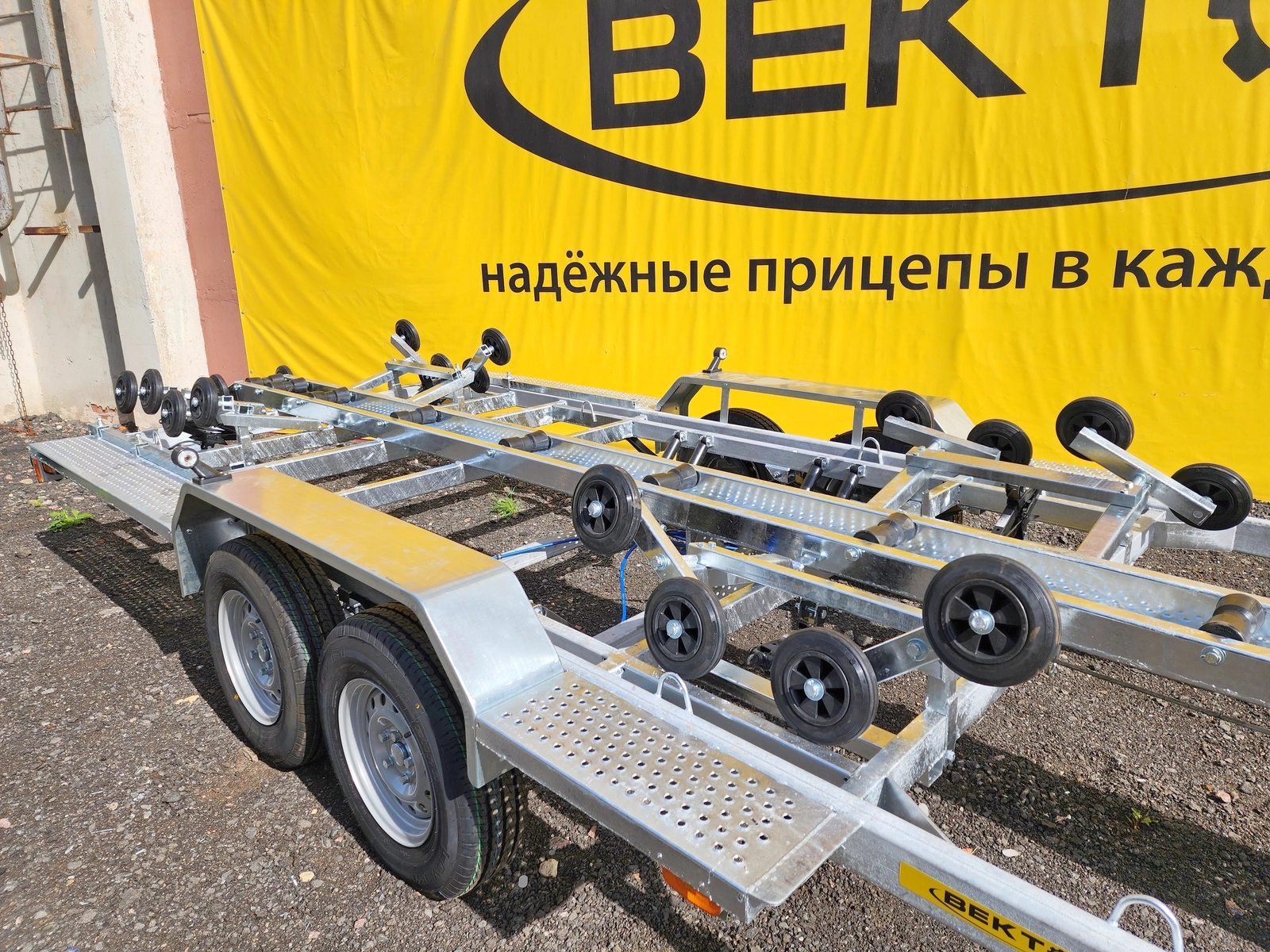ЛАВ 81023Трёхосный прицеп для водной техники с тормозом2190Прицеп для перевозки лодки, катера длиной до 9,5 м. 3 оси.