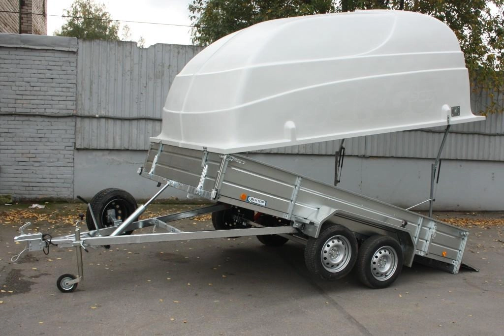 Опции: каркас с тентом (возможен тент с аэродинамическим скосом), пластиковая крышка, салазки для лодки или гидроцикла, устройство для крепления мотоцикла, доп. борта 240 или 380 мм, кронштейн с лебёдкой, трапы для заезда г/п 800кг, запасное колесо. Не требуется категория "Е"