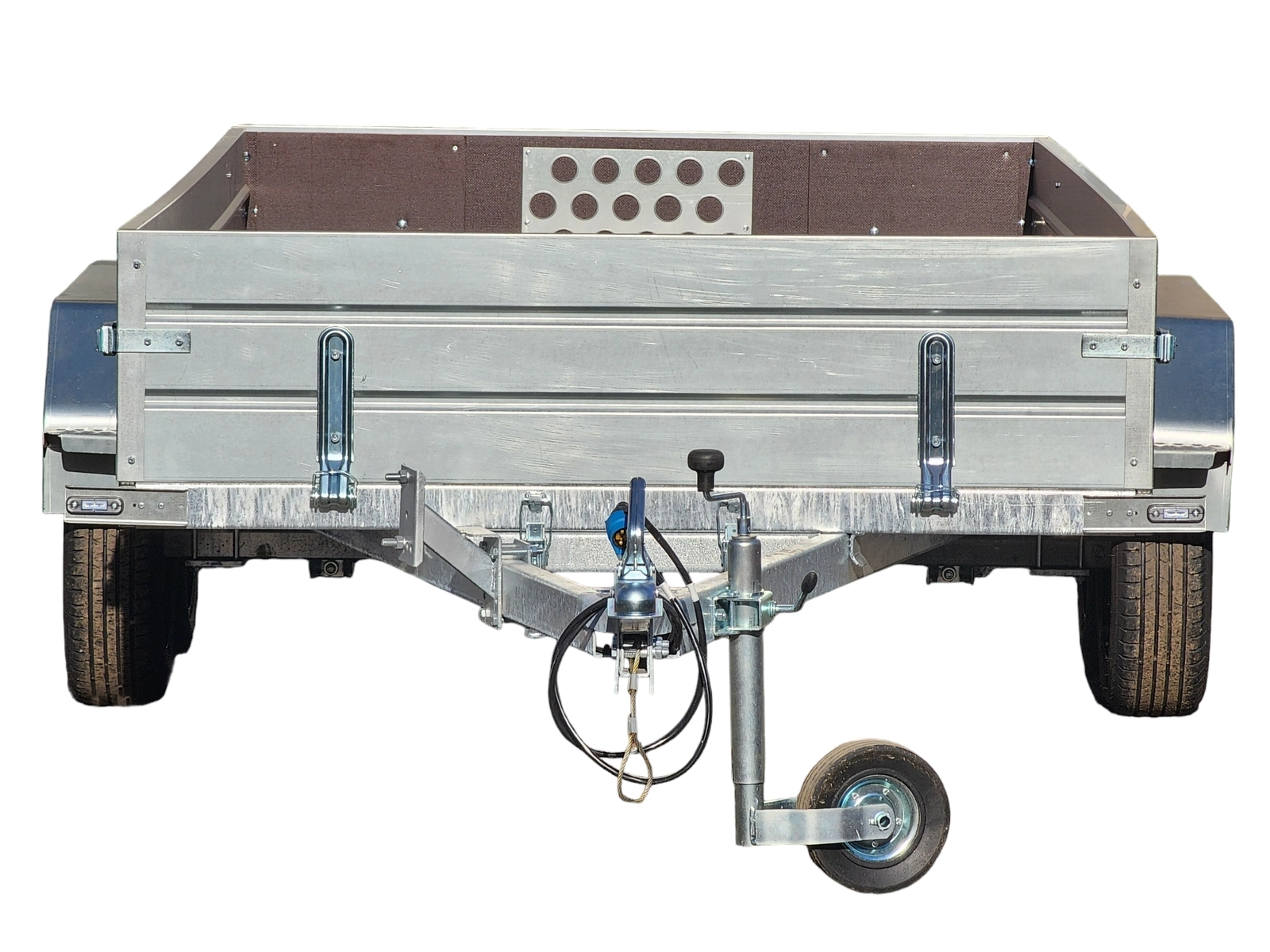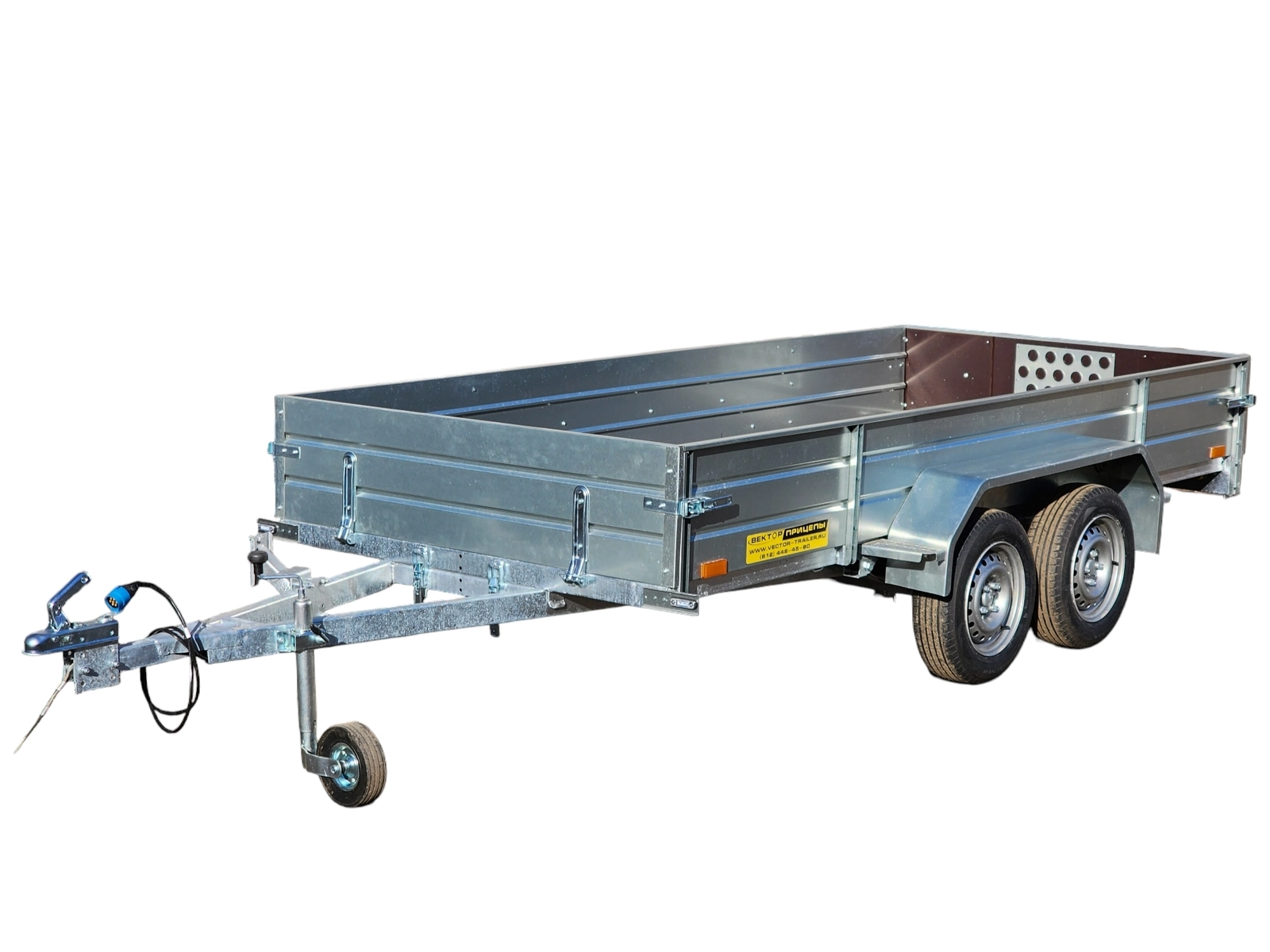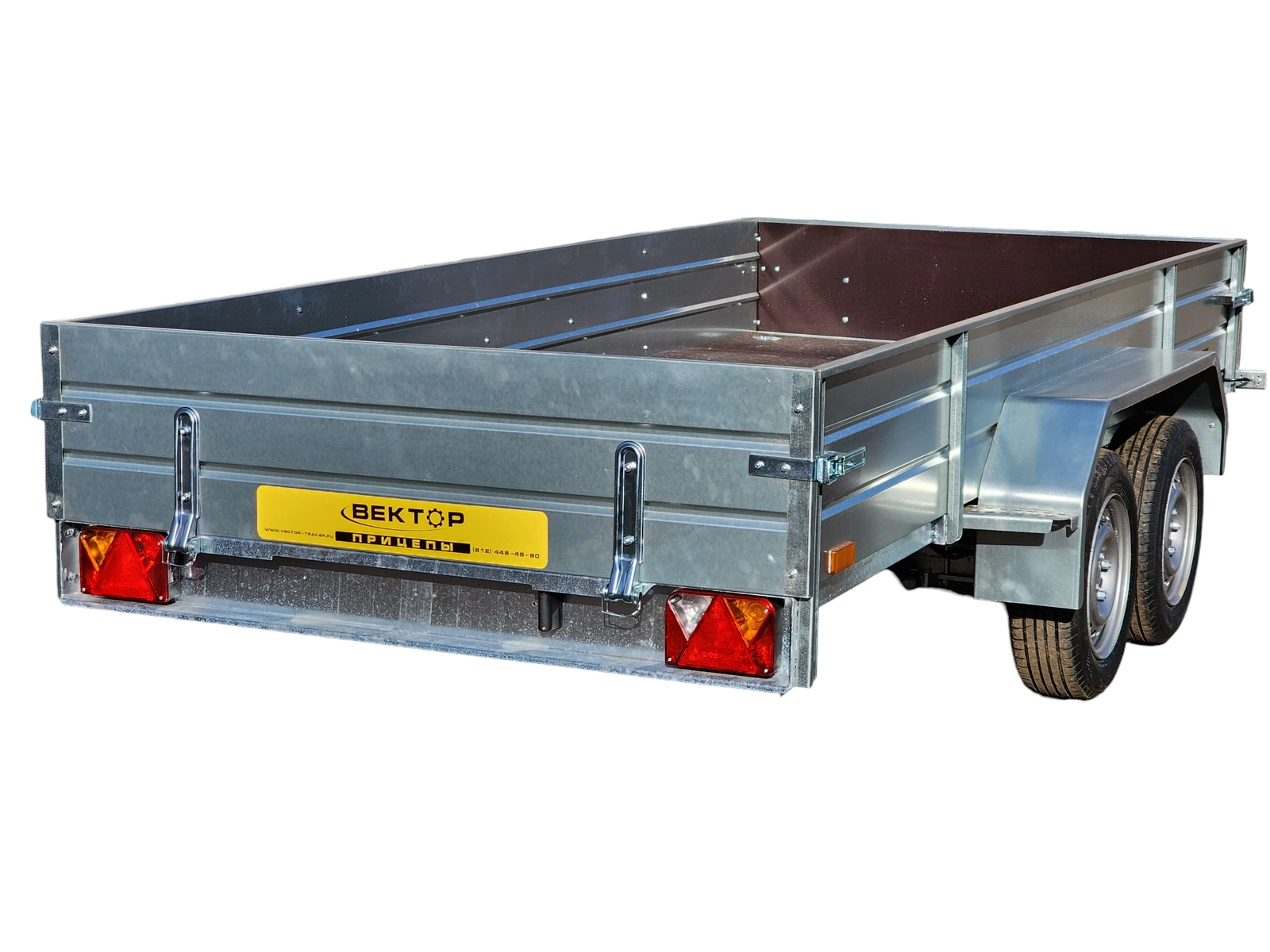 Рама, дышло и ось прицепа полностью оцинкованы методом горячего цинкования изнутри и снаружи. Борта и крылья из оцинкованной стали. Прицеп двухосный, без тормозов, снабжен откидным кузовом, передний и задний борта откидные, с возможностью быстрого съёма. Дышло V-образное. Днище - ламинированная фанера. Подвеска колес (R13) на четырёх полуэллиптических переменного сечения рессорах с гидравлическими амортизаторами. Размеры кузова 3500*1500 мм. Высота бортов 240 или 380 мм. Грузоподъёмность 398 кг.