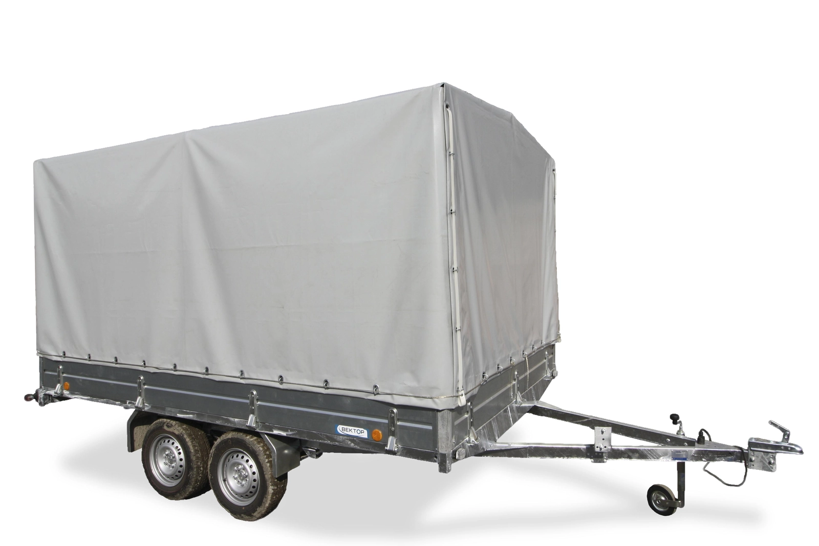 Тент с каркасом,трапы для заезда г/п 800 кг, запасное колесо, задний борт-трап. Комплектование прицепа задним борт-трапом возможно только при высоте бортов 380 мм. Не требуется категория "Е"