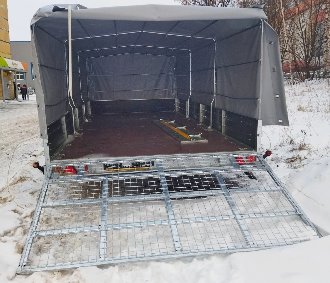 Опции: каркас с тентом, трапы для заезда г/п 800 кг., запасное колесо. боковые опорные стойки. Не требуется категория "Е"