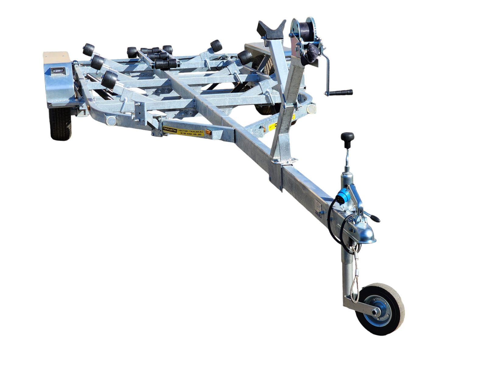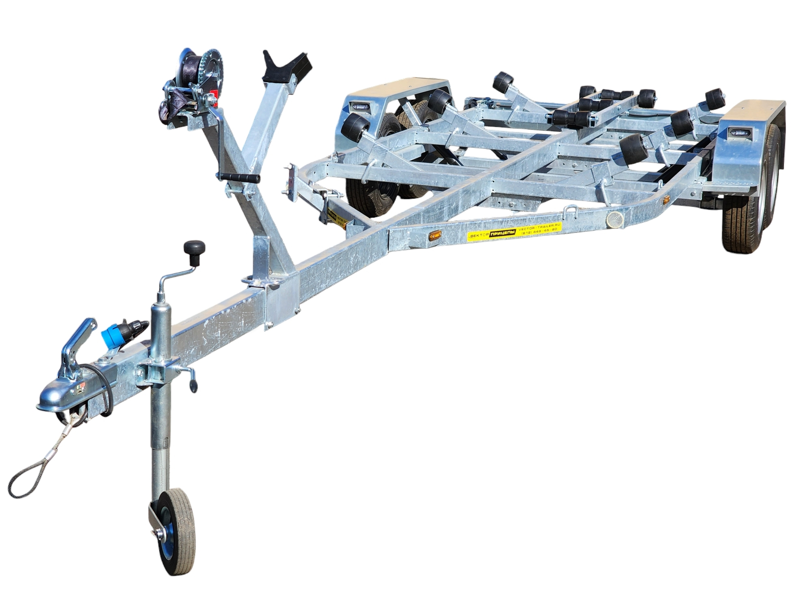 Опорное колесо, ручная лебёдка, металлические подножки и кронштейн для "запаски" в стандартной комплектации.