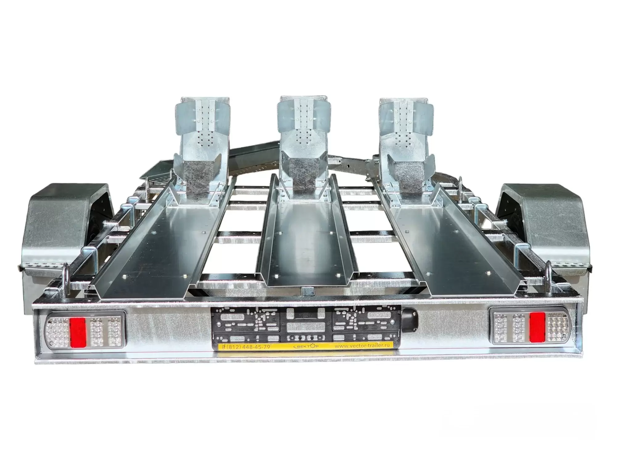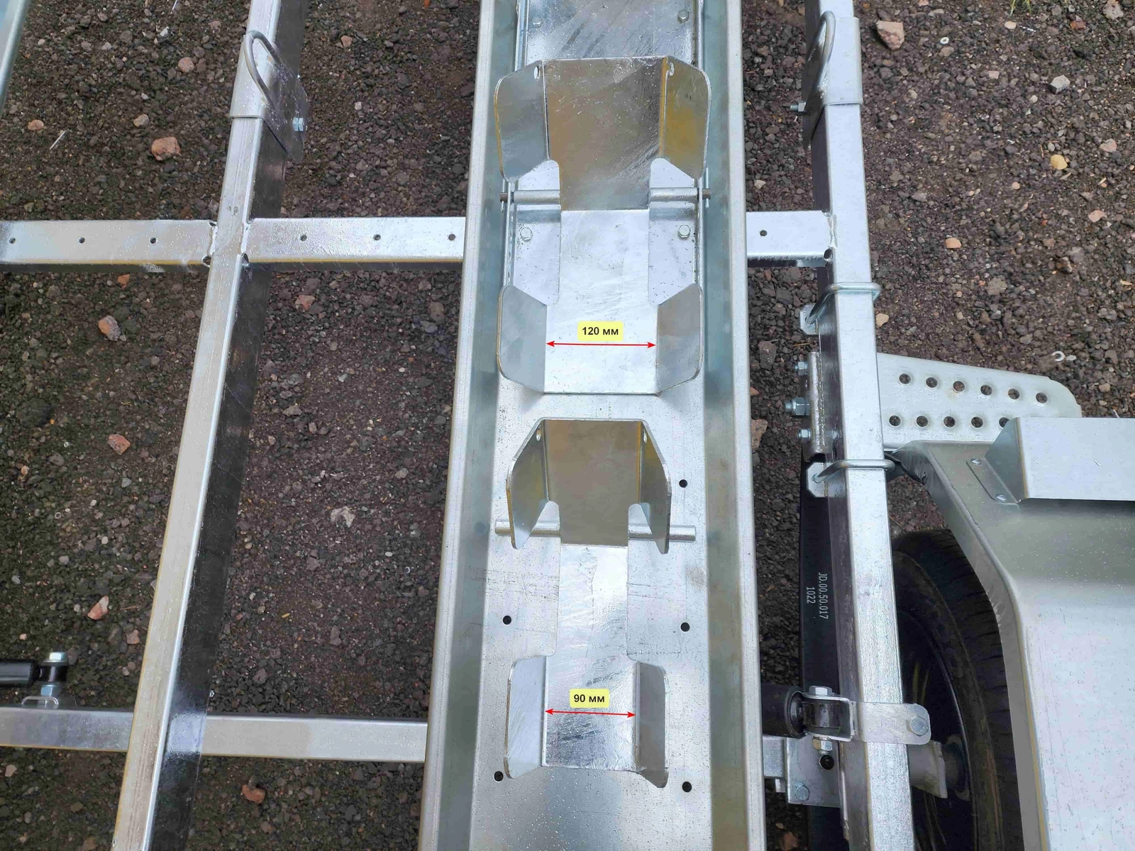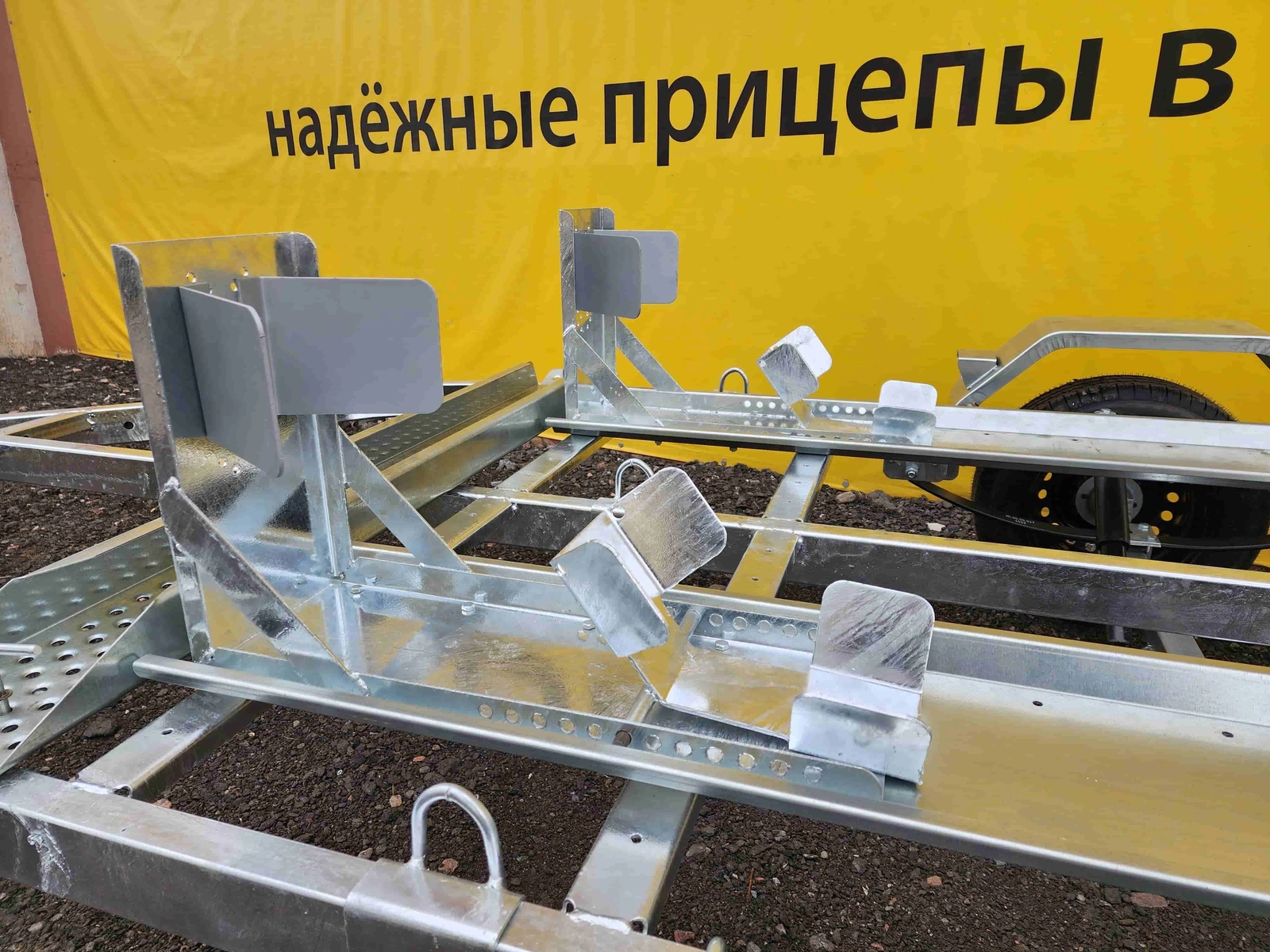 Рама прицепа сварная из труб и профилей, оцинкованная "горячим способом". Традиционно в базовую комплектацию входят: крылья из оцинкованного металла, подножки на крыльях, кронштейн запасного колеса, переходник на разную высоту фаркопа.