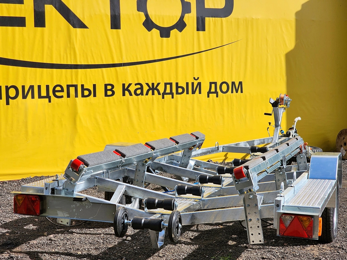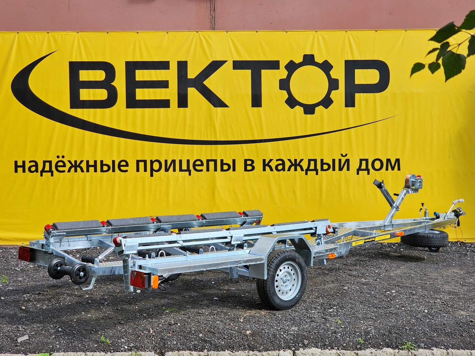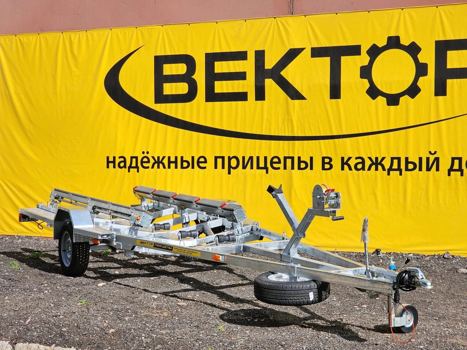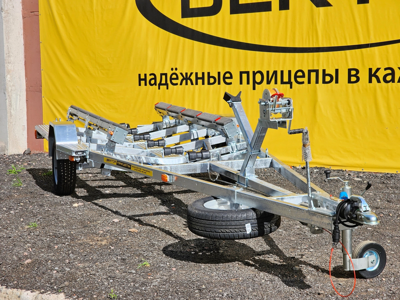 Легковой прицеп для перевозки лодки и для перевозки катера. Прицеп одноосный, максимальная длинна плав средства 6,3 м., грузоподъемность - 915 кг.