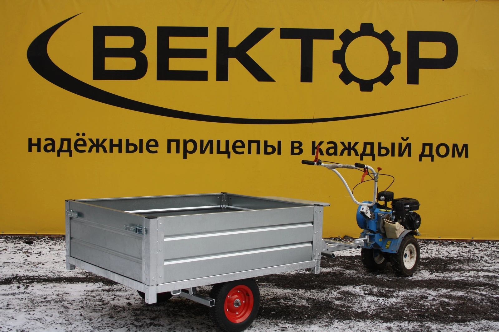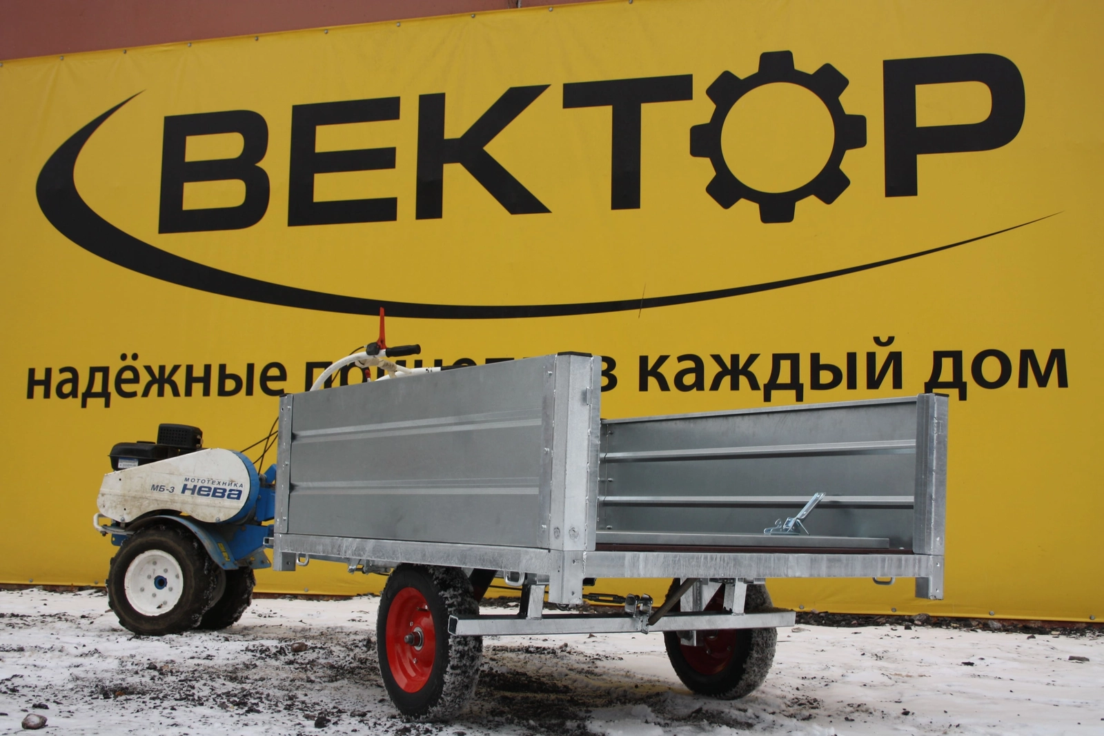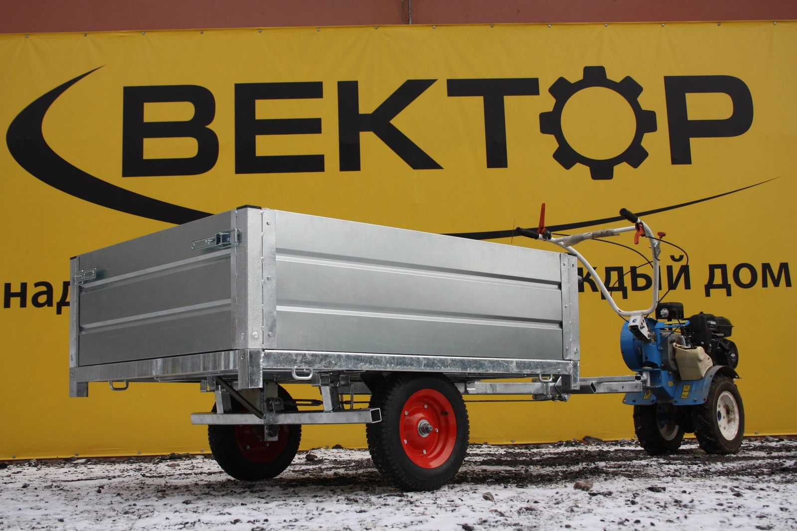 Прицеп (тележка) для мотоблока ЛАВ-81002 предназначен для перевозки различных грузов (сыпучих, сельхозпродукции, стройматериалов и т.д.) с использованием мотоблока по территории садов и огородов, коммунальных и домовых приусадебных хозяйств. Кузов самосвальный. Рама и дышло прицепа полностью оцинкованы методом горячего цинкования. Борта из оцинкованной стали. Прицеп одноосный, с механической тормозной системой, снабжен откидным кузовом, задний борт съемный. Днище - ламинированная фанера 9 мм. Высота бортов 380 мм. Грузоподъёмность 405 кг. Размеры кузова 1400*1100 мм. Прицеп поставляется в полусобранном виде (кузов, дышло, стойки с колесами, сидение)