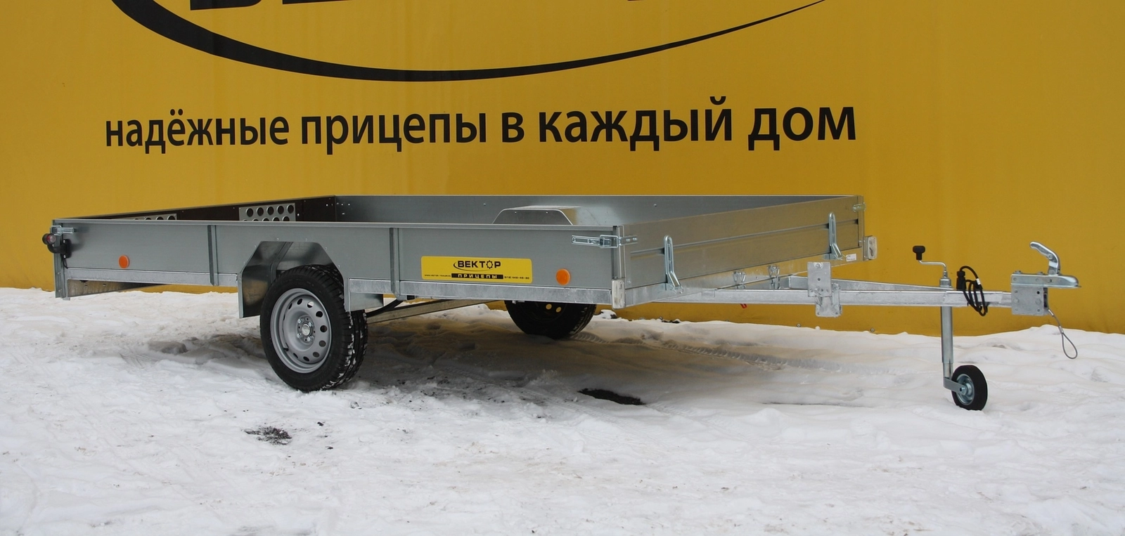 ЛАВ 81026AБортовой одноосный прицеп с тормозом3500 x 1500 1080Прицеп повышенной грузоподъёмности для перевозки квадроцикла, снегохода, и др. грузов. Кузов откидной.