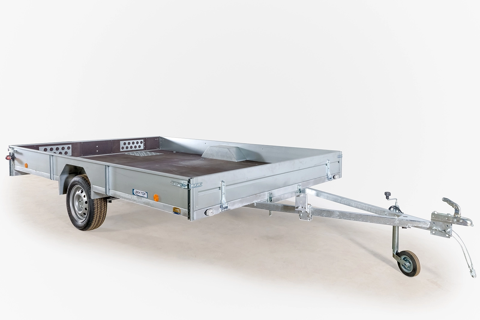 Опорное колесо, регулятор высоты сцепного устройства, кронштейн запасного колеса и металлические подножки - в базовой комплектации.