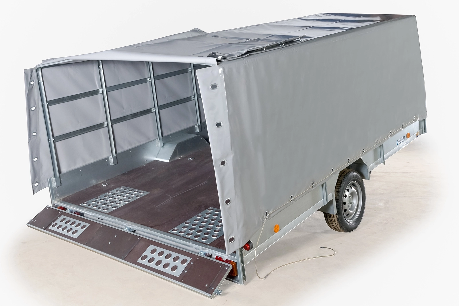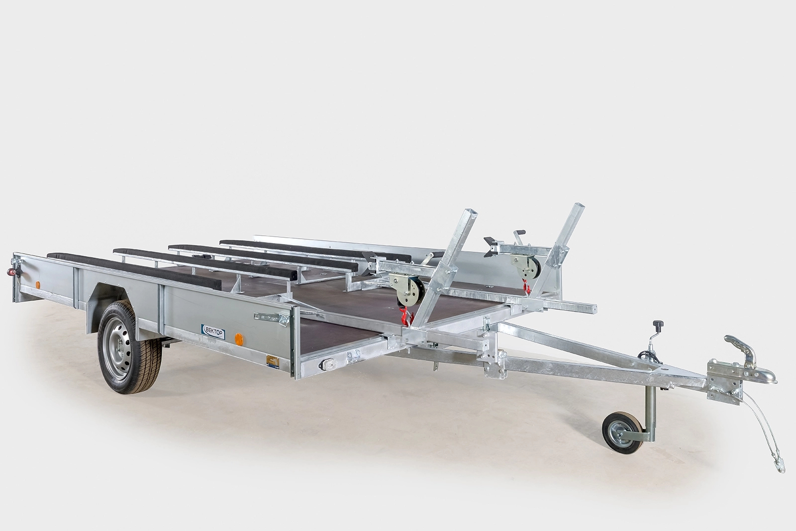 Опции: каркас с тентом (возможен тент с аэродинамическим скосом), салазки для лодки или гидроцикла, устройство для крепления мотоцикла, кронштейн с лебёдкой, запасное колесо. Не требуется категория "Е"