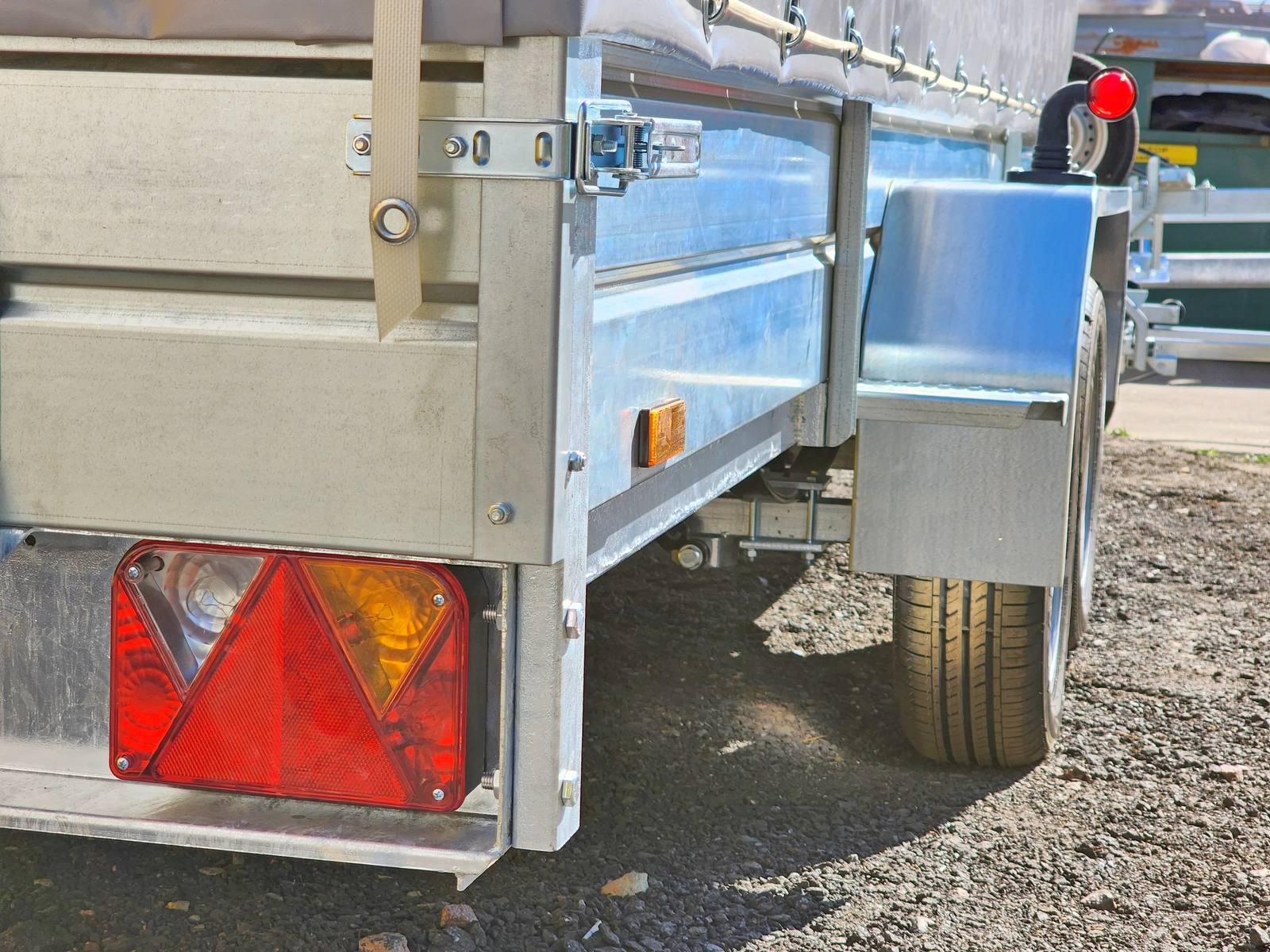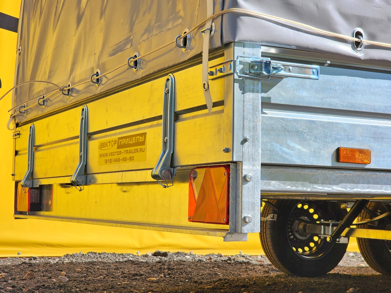 Опорное колесо, регулятор высоты сцепного устройства, кронштейн запасного колеса и металлические подножки - в базовой комплектации.