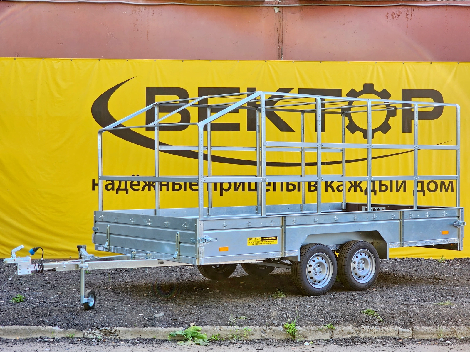 ЛАВ 81026AБортовой одноосный прицеп с тормозом3500 x 1500 1080Прицеп повышенной грузоподъёмности для перевозки квадроцикла, снегохода, и др. грузов. Кузов откидной.