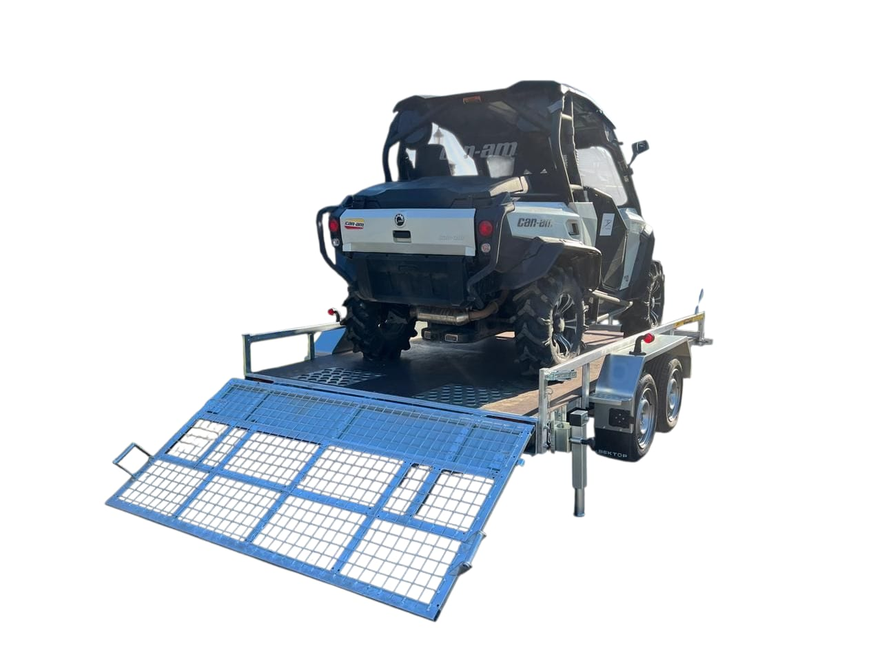 Бортовой прицеп для перевозки 2-х ед. техники одновременно. Кузов откидной.