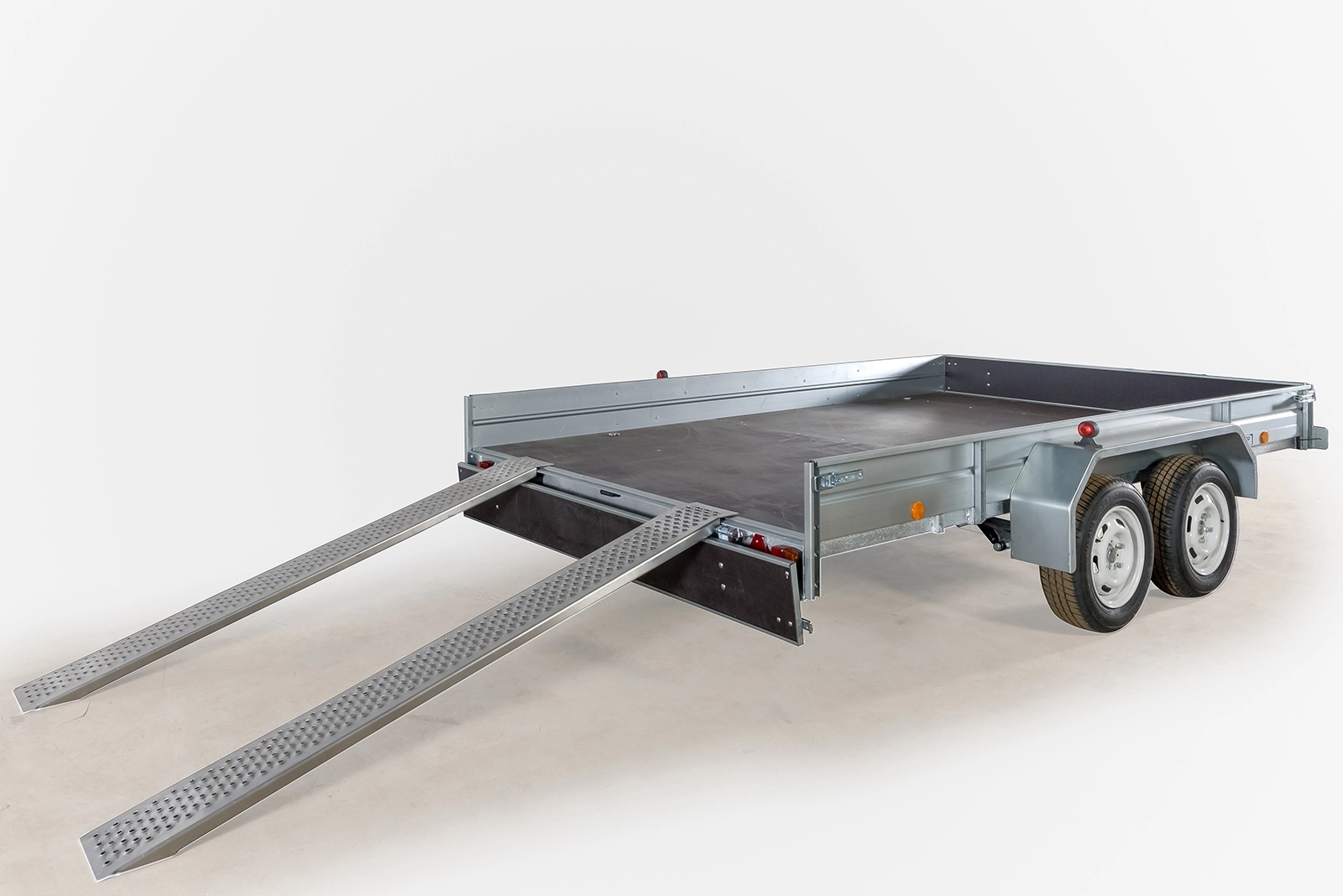 ЛАВ 81012B (колея 1780 мм)Бортовой одноосный прицеп без тормоза3500 x 2000 410Прицеп для перевозки двух ед. техники одновременно. Кузов откидной.