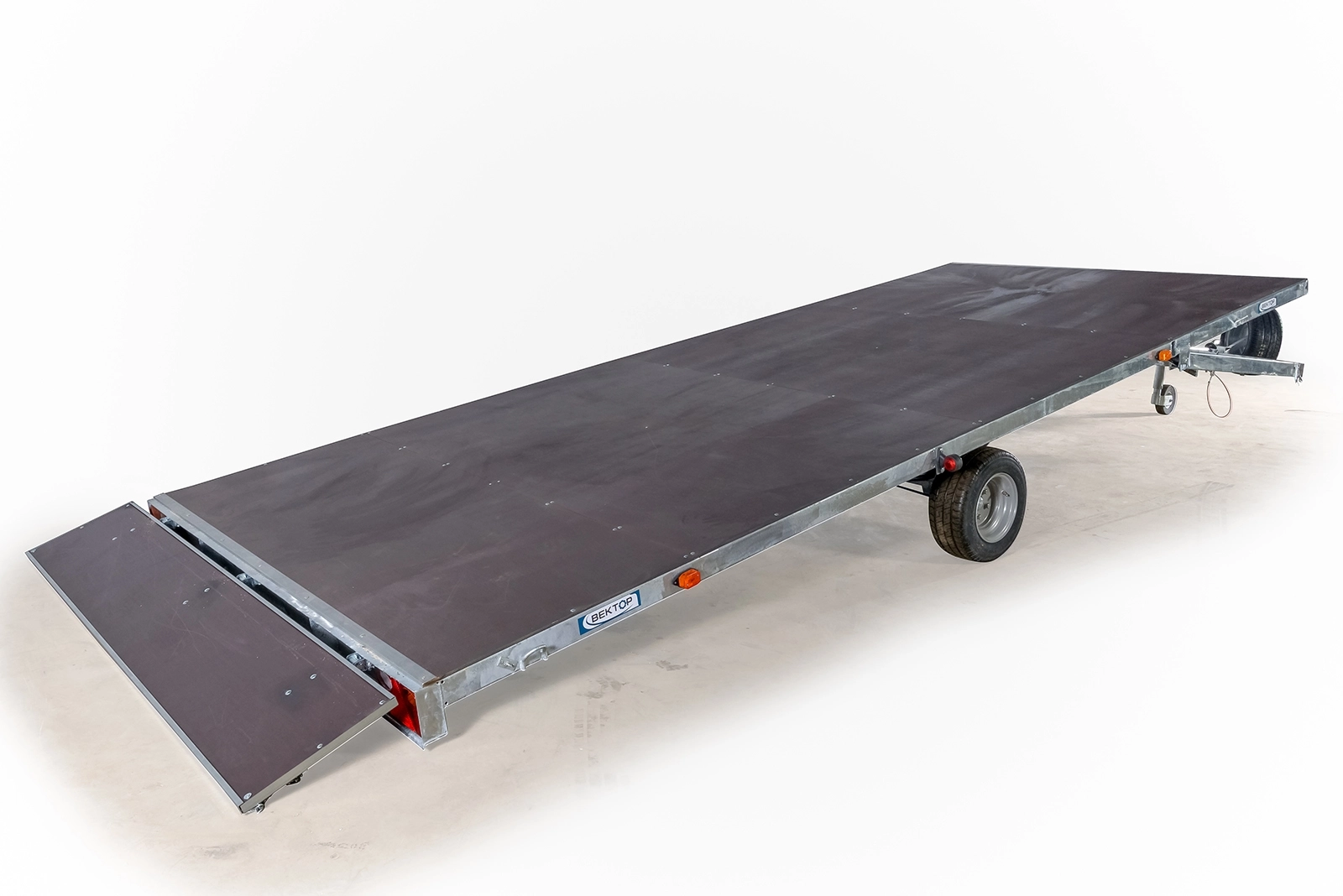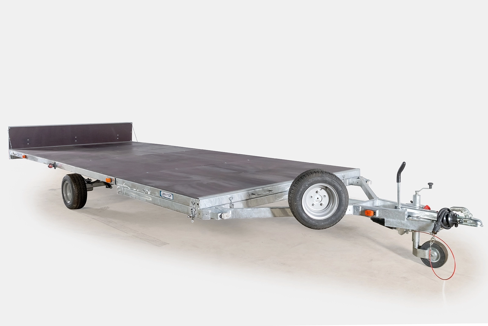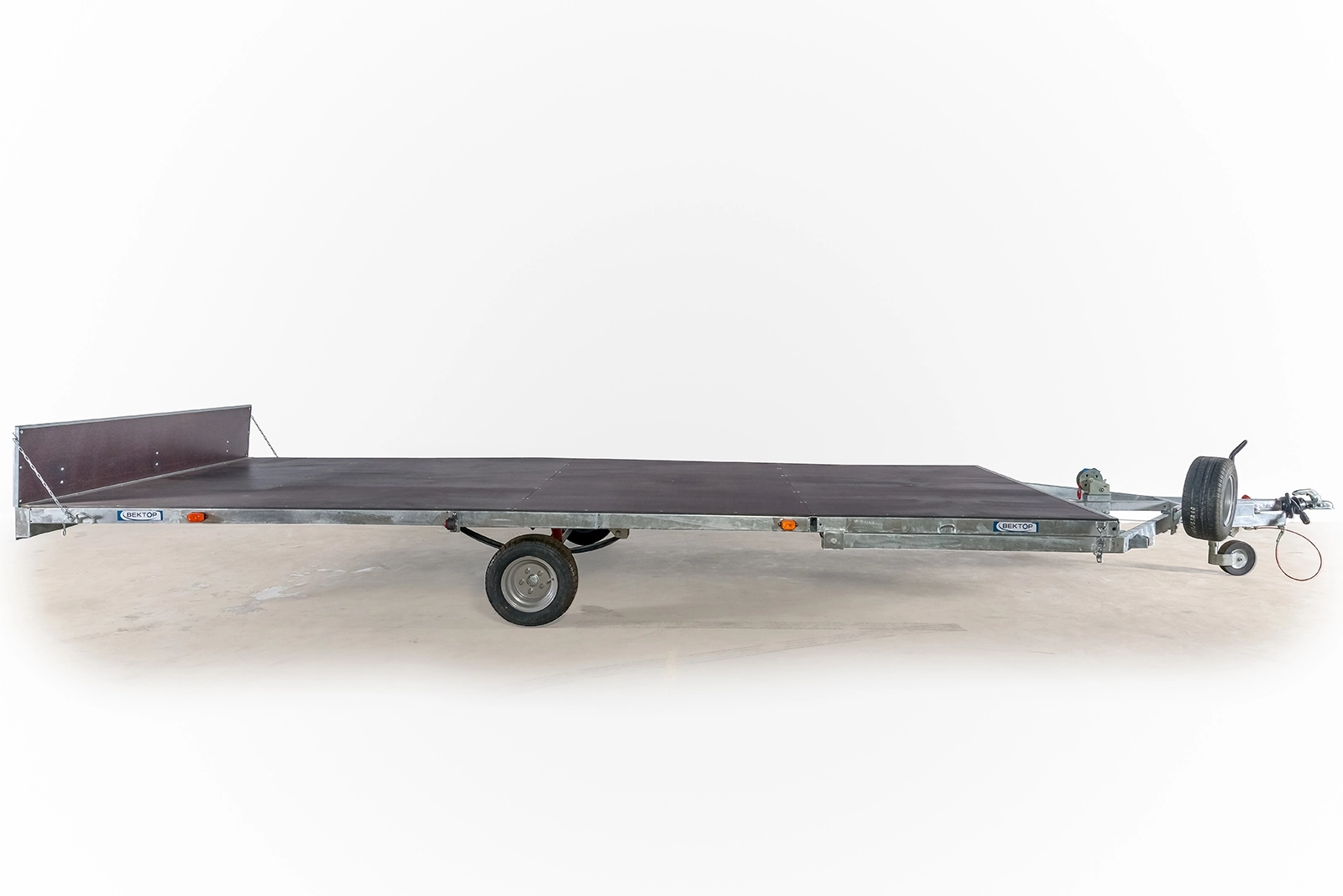 Легковой прицеп для перевозки судна на воздушной подушке. Прицеп одноосный, с тормозом наката. Грузоподъёмность - 790 кг., размер платформы (ДхШ) - 5000х2320 мм.