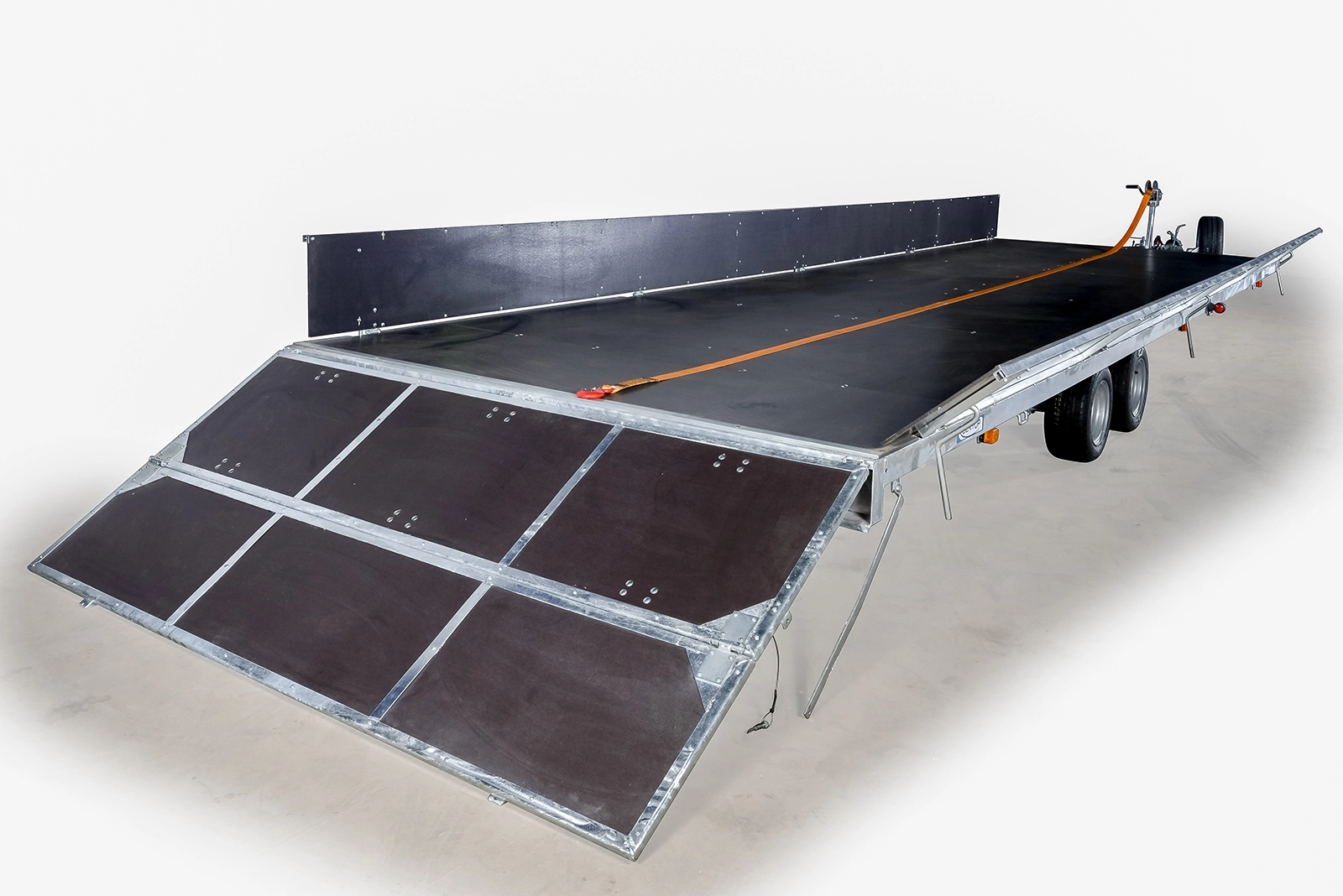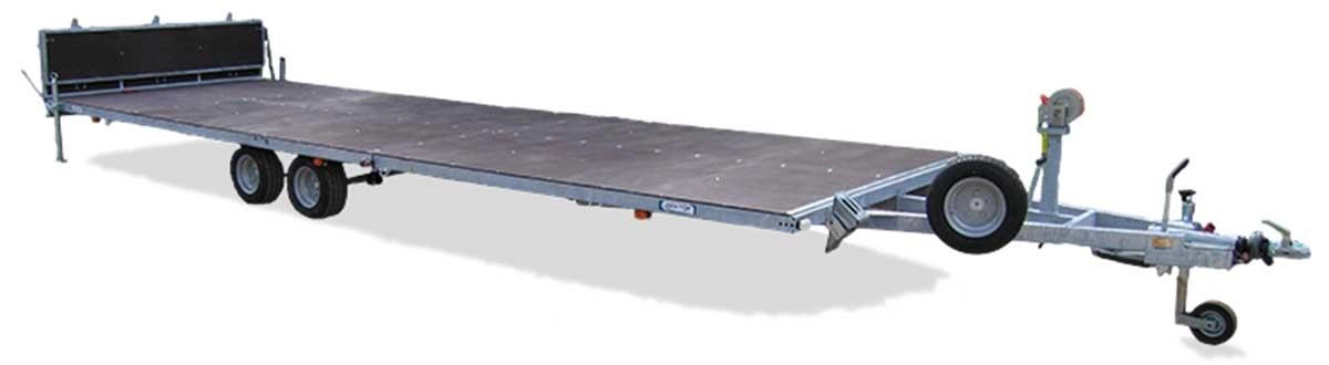 Легковой прицеп для перевозки судна на воздушной подушке или для перевозки вертолета. Прицеп двухосный, с тормозом наката. Грузоподъёмность - 1970 кг., размер платформы (ДхШ) - 7500х2250 мм.