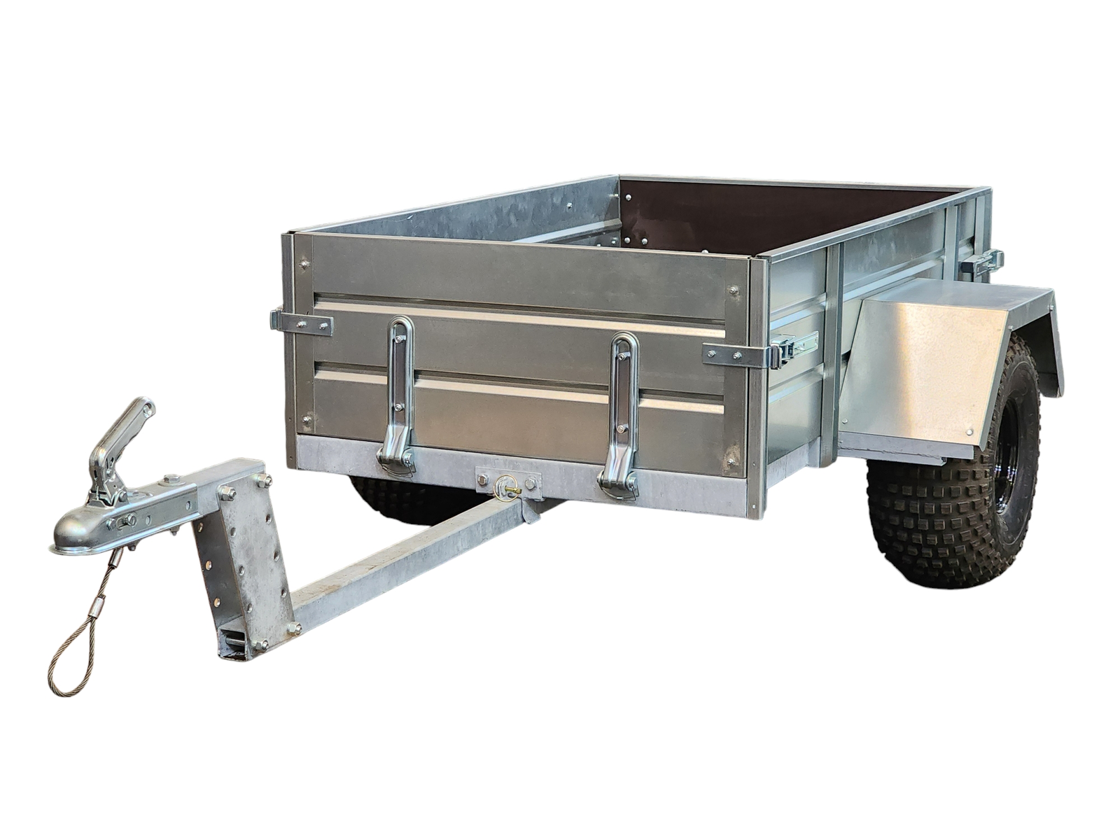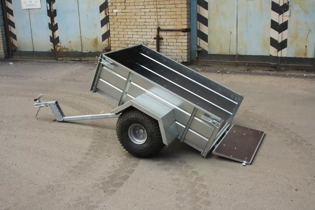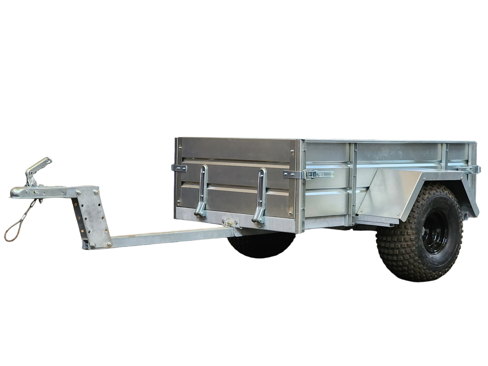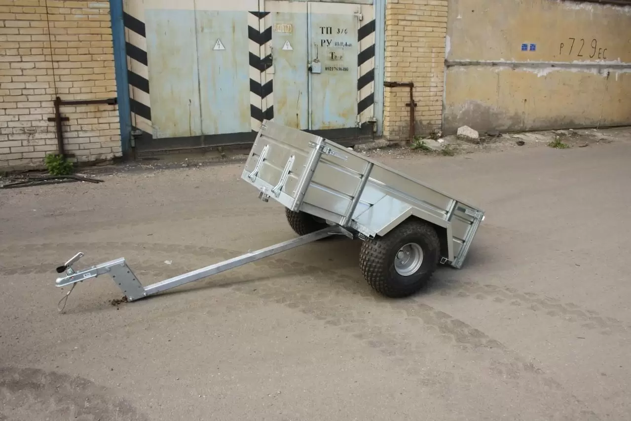 Прицеп на квадроцикл расширяет функциональность четырехколесника. Его можно применять для перевозки грузов или экипировки. Может использоваться только вне дорог общего пользования. Рама, дышло и ось прицепа полностью оцинкованы методом горячего цинкования. Борта и крылья из оцинкованной стали. Прицеп одноосный, снабжен откидным кузовом, передний и задний борта откидные, с возможностью быстрого съёма. Пол прицепа и внутренние поверхности откидных бортов выполнены из ламинированной фанеры. Колея прицепа совпадает с колеёй большинства квадроциклов. Колёса могут быть как R13 (ВАЗовские), так и R8 (квадроциклетные). Не требуется регистрация прицепа в органах ГИБДД.