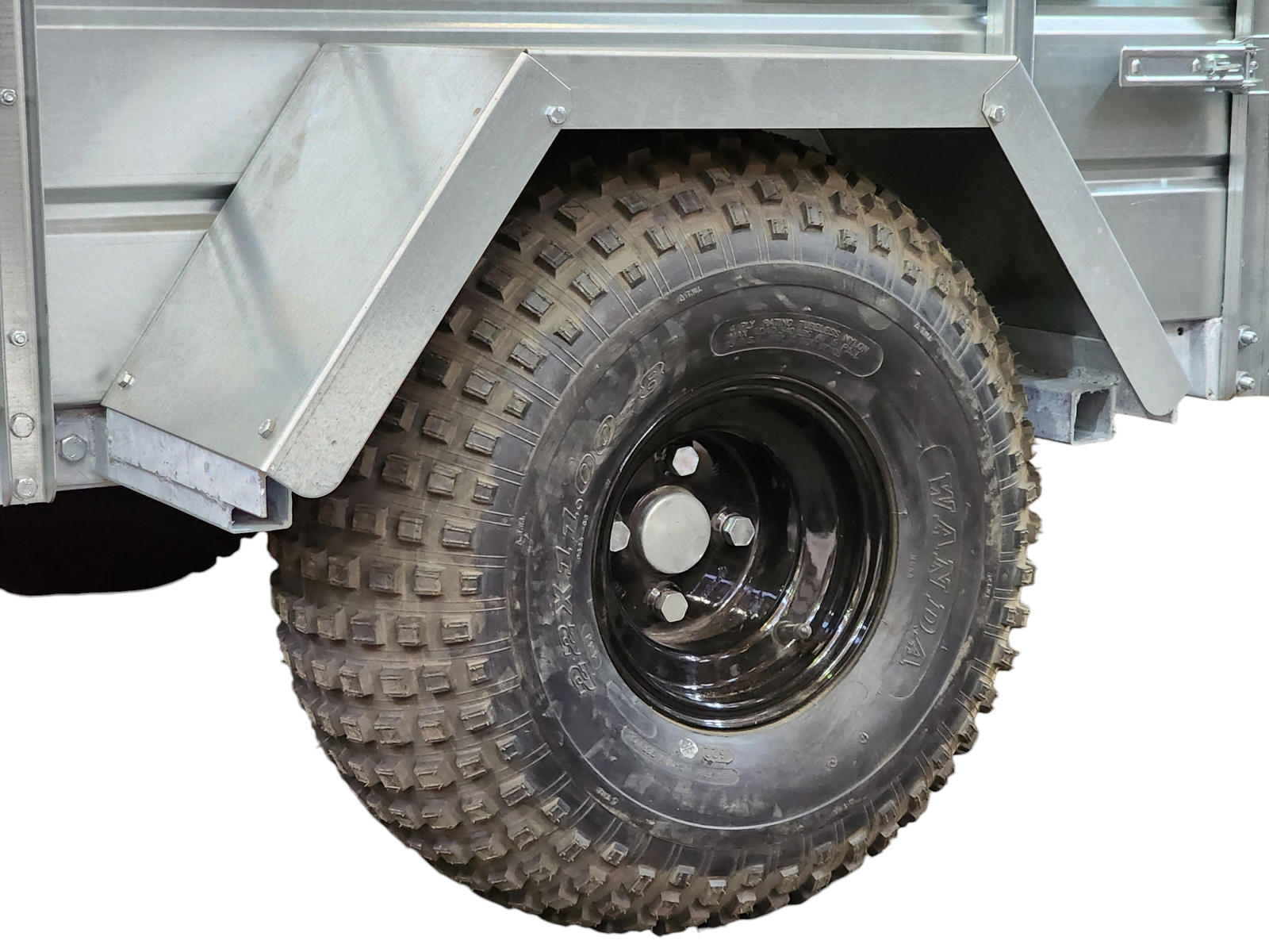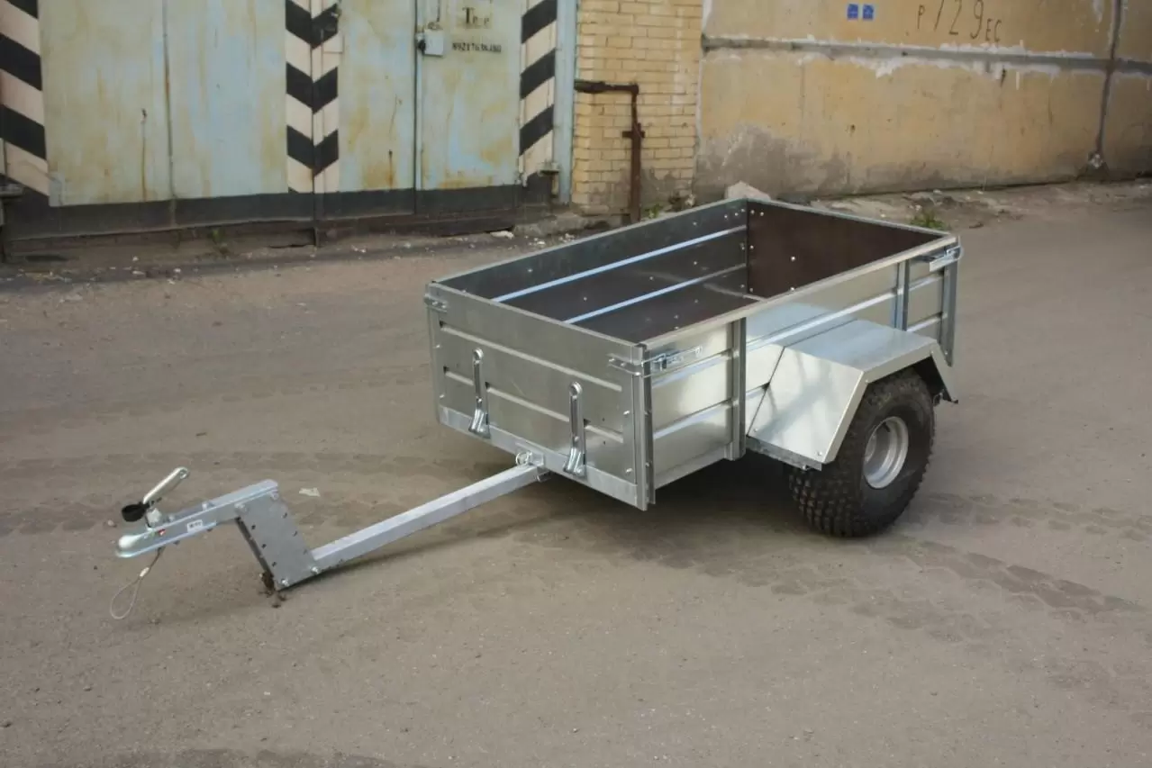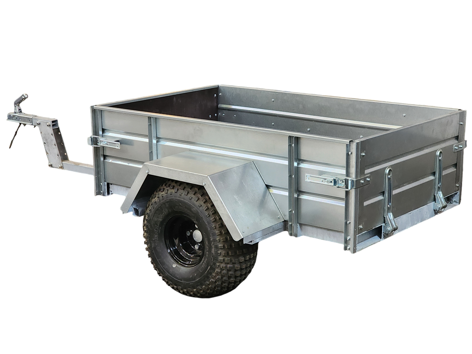 Прицеп на квадроцикл расширяет функциональность четырехколесника. Его можно применять для перевозки грузов или экипировки. Может использоваться только вне дорог общего пользования. Рама, дышло и ось прицепа полностью оцинкованы методом горячего цинкования. Борта и крылья из оцинкованной стали. Прицеп одноосный, снабжен откидным кузовом, передний и задний борта откидные, с возможностью быстрого съёма. Пол прицепа и внутренние поверхности откидных бортов выполнены из ламинированной фанеры. Колея прицепа совпадает с колеёй большинства квадроциклов. Колёса могут быть как R13 (ВАЗовские), так и R8 (квадроциклетные). Не требуется регистрация прицепа в органах ГИБДД.